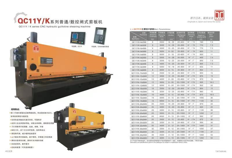 產品介紹:整機采用全鋼板焊接結構,并經整體回火處理 上刀架在液壓缸的驅動下,向下做直線運動 上下刀片均為矩形刀片,刀口間隙可以手動或電動快速調整 剪切行程由時間繼電器控制,電控調整剪切角 后擋料的前后方向運行,由電機帶動,并由電子數顯表顯示,同時具有微調功能 關鍵電氣件均為國際***產品 透過可視式的安全防護欄,操作者可以通過燈光對線裝置進行輕松剪切,安全又高效 用戶可選配氣動后托料裝置。 QC11Y系列